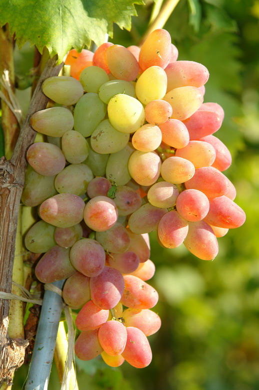 - nowa, interesująca odmiana rosyjska. Owoce dojrzewają wcześnie. Grona duże, średnio zwarte. Jagody duże, o oryginalnym, wydłużonym jajowatym kształcie, barwy od jasnozielonej do ciemnoróżowej. Miąższ średnio zwarty, o zharmonizowanym smaku. Na choroby grzybowe krzewy są średnio odporne. Wytrzymałość na mróz -24°C.