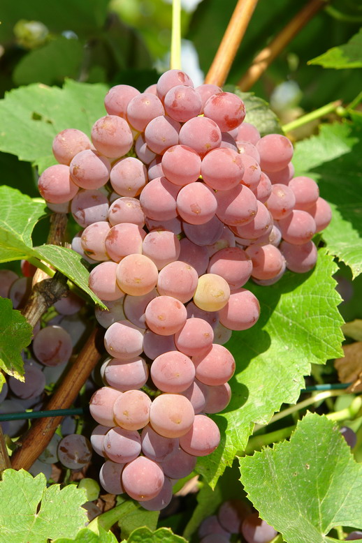 - owoce dojrzewają średnio wcześnie - w uprawie w drugiej połowie września. Plenność krzewów dobra. Grona średniej wielkości lub duże, luźne. Jagody duże, kuliste o oryginalnej purpurowo-różowej barwie. Miąższ delikatny, słodki, bardzo smaczny, o posmaku agrestowym. Odmiana średnio wrażliwa na choroby. W okresie głębokiego spoczynku krzewy znoszą mrozy -20°C i w uprawie polowej wymagają okrycia na zimę. Odmiana może być uprawiana również pod osłonami.