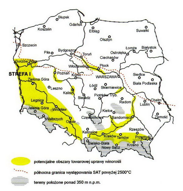 Charakterystyczną cechą polskiego klimatu jest duża zmienność, dlatego szczególnego znaczenia nabiera wybór miejsca o najbardziej korzystnym mikroklimacie. Najlepsze są stoki o wystawie południowo-zachodniej, południowej lub w mniejszym stopniu południowo-wschodniej. Działka pod winnicę powinna być wzniesiona nad otaczający teren, ze swobodnym odpływem chłodnych (ciężkich) mas powietrza. Na stoku o większym odchyleniu w kierunku zachodnim mikroklimat jest łagodny i bardziej wilgotny. Teren odchylony bardziej na wschód ma mikroklimat ostrzejszy, bardziej suchy i częściej nawiedzany przez zimne i wysuszające wiatry północno-wschodnie. Stoki o ekspozycji zachodniej, a zwłaszcza wschodniej, mają ograniczone zastosowanie pod winnice.![]() |